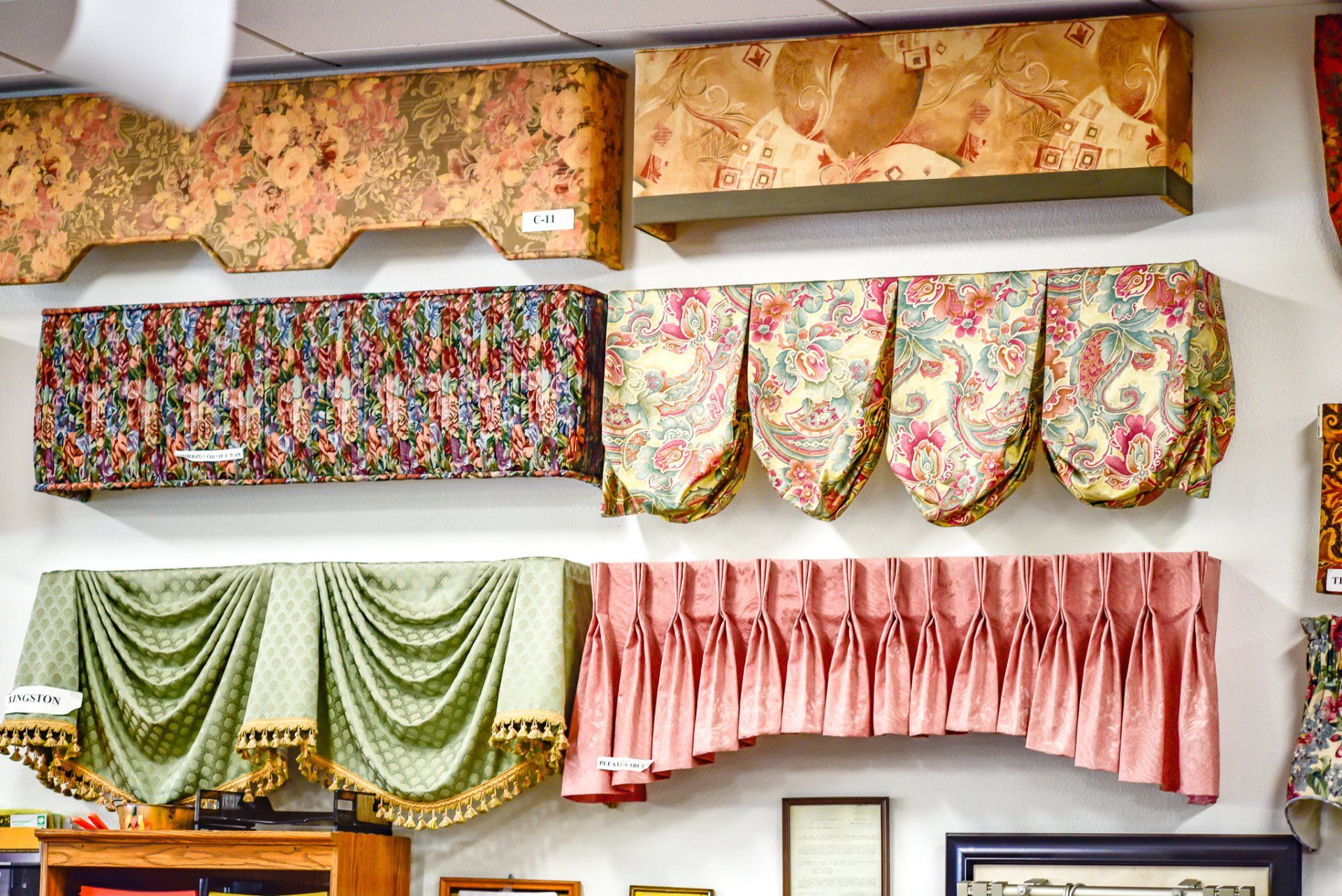 - Custom draperies, blinds, shades, and shutters